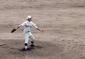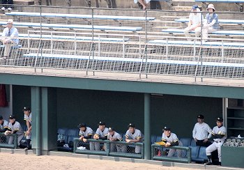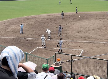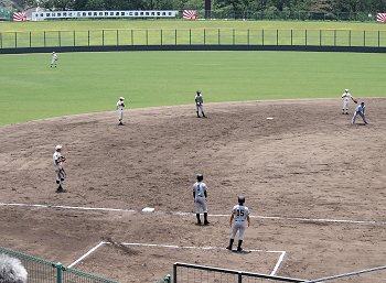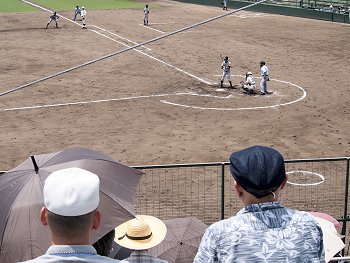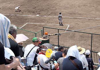 この日は、大門・誠之館・福山高校…と地元3校の試合がありますので、前々から時間が許せば観戦を予定しておりましたGONsan。で、急いで球場にと向かいますと既に1試合は終了で、大門高校は勝利に終わっておりました。ですから、第2試合目の「山陽×誠之館」の対戦から観戦です(^.-)☆