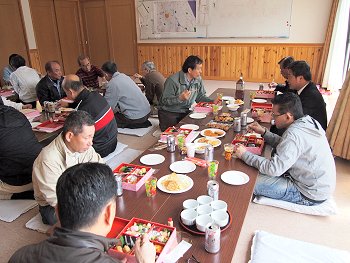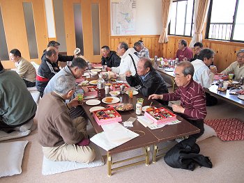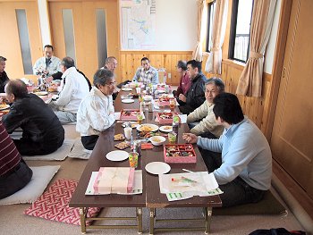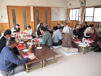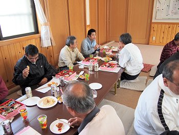 最近は場所取りも難しくなりましたのでしょうか…それとも後片付けが面倒だからなのでしょうか…サクラの樹の下ではなくて、今回は集会所内での開催となりました(^-^)