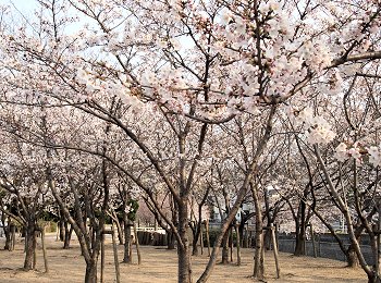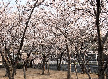 福山市民球場の西側の川際に少しサクラかあるのですけど、チョッと寂しい感じ(^-^)