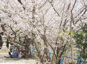 せっかくですから、ついでに天當神社のサクラも画像に納めておく事に致しました。うん、うん、こちらにも1組花見を楽しんでおられます方々がおられましたネ(^_^)v