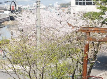 備後ハイツでのサクラを楽しみました後は、スグに今度は福山港湾合同庁舎近くの「天當神社」に直行です(^.-)☆