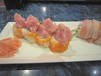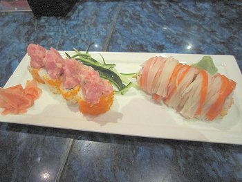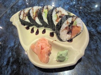 巻物の種類が多くて“BANZAIロール”と言うのは、まぐろ・アボカド・うなぎ・タコ・チーズ。美味しいです(^_^)v