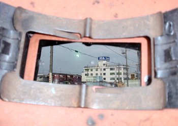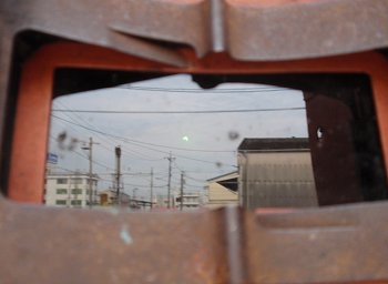 この溶接用の保護マスクのガラス部分に、キレイに後方の建物が入りましたから、苦笑しながらも結構お気に入りの画像となりましたねぇ(^_^)v