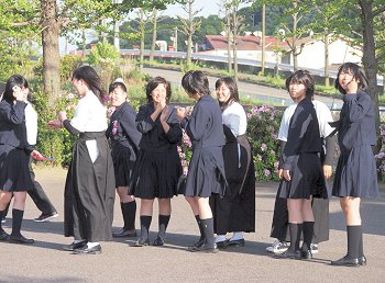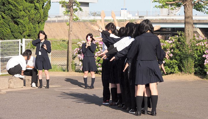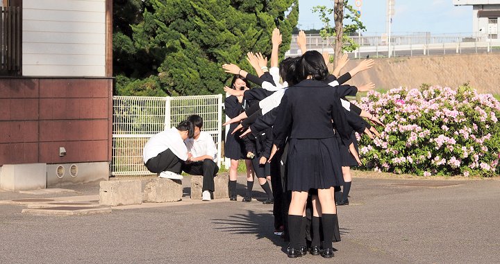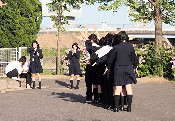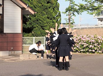 そして、弓道場前の広場にとヤッて来ますと、練習を終えた高校生の皆様が何やら記念撮影中。