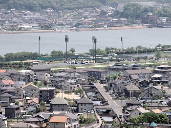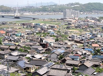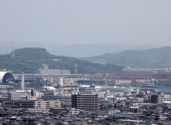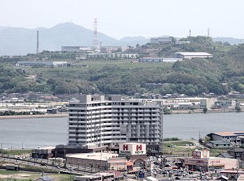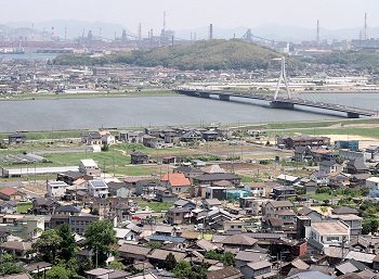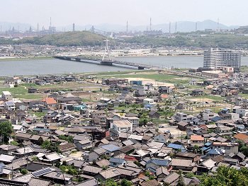 眼下に我が町内、そして対面方向にはJFE。