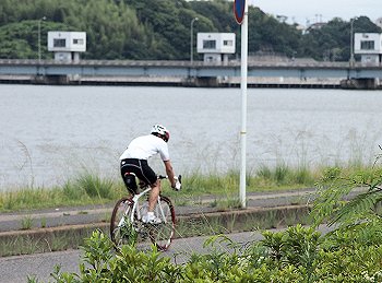GONsanの足下でゼーゼー言いながら待機しておりますから(^.-)☆そぅそぅ、市営プールの横を歩いておりますとプールに水が入っています音が…