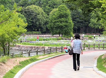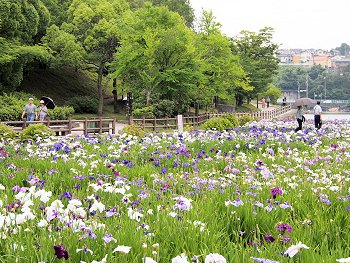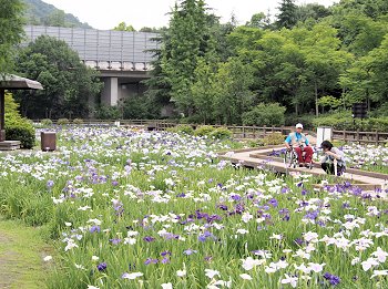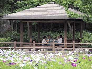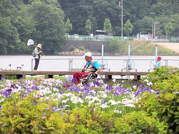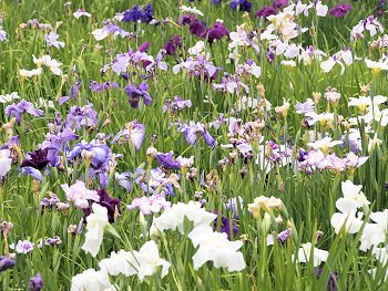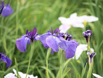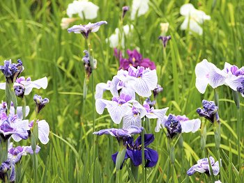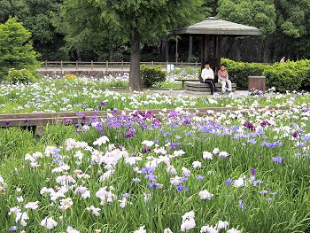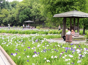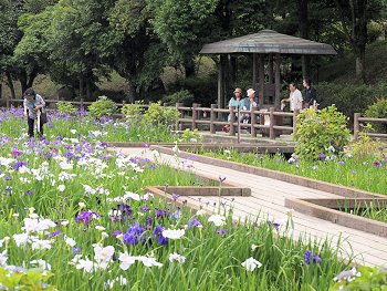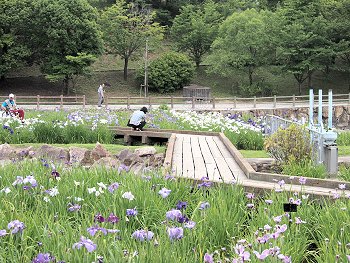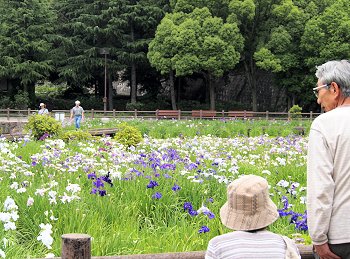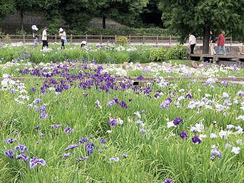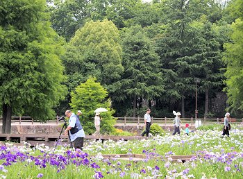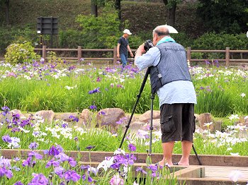 ゴンchanも連れて来れば良かったのでしょうけど、珍しくよく眠っていましたから留守番です。ノンビリと散策しながら菖蒲園にと向かいますと、皆さんカメラを片手に楽しんでおられます。