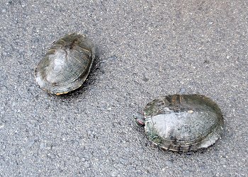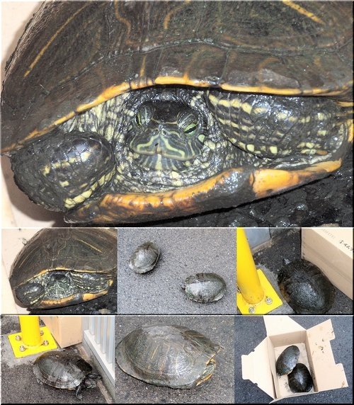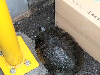 半開きの眼が眠っていますようにも見えますし、とにかく憎めませんから(^_^)でも、段ボールに入れましたこの二匹のカメsan…一体どぅしますのでしょうねぇ〜
