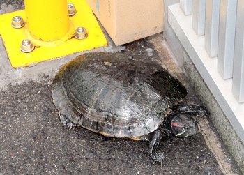 よくよく見れば憎めない顔をしていますねぇ〜亀sanも(^.-)☆JR東福山駅貨物ヤードに沿って小さな川と言いますか用水路が存在します。