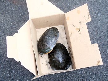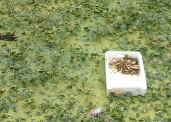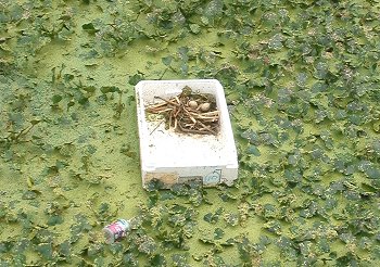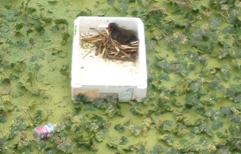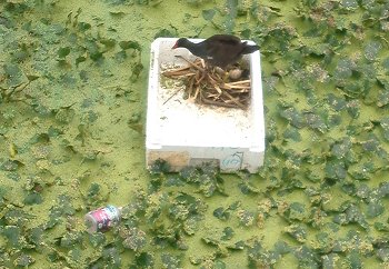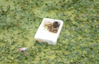 この小川に捨てられました発泡スチロールの箱を利用しまして巣を作り、そしてこの中で卵を温めて子育てです(^_^)v
