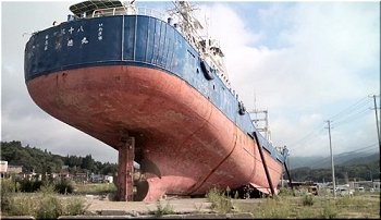 陸に上がった船…これらの画像は、つい最近、宮城県気仙沼方面に出かけます機会がありました友人から届いたものなんです。