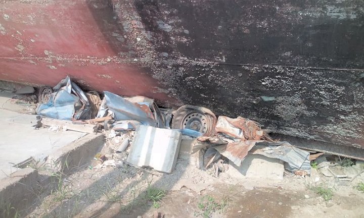 船尾に「第18共徳丸」の記載が見えますネ…津波で気仙沼漁港から北約500mのJR鹿折唐桑駅前まで流された「第18共徳丸」(330トンの巻き網漁船)。周辺のがれきは撤去されてきてはいますけど、船倉の下には車輪も見えますから、う〜ん、車輌が潰されていますのでしょうか…こんな状況ですから、きっと遠慮がちに3枚ばかり撮られましたのでしょうねぇ(^-^)//"