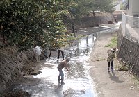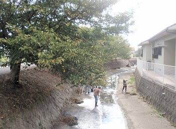 我が家を出ますのが少し遅くなり、出かけましたのは定刻5分前。既に皆さん始めておられましたネ(^-^;GONsanの班は、毎回水呑川土手の草取りです。