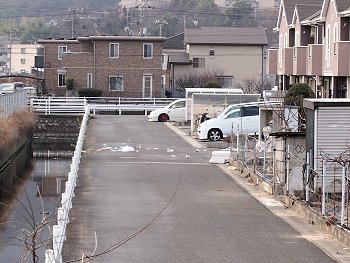 GONsanが暮らしています水呑三新田は、福山でも有数の宅地が芦田川の川底より低い場所の一つですから、こうしたポンプが用水路の水を汲み上げています。この白い建物はそのポンプ場なのであります。