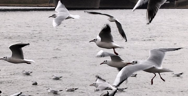 パンくず…お菓子…与えておられますのは何なのか分かりませんけど、群がるカモメで実に賑やか。