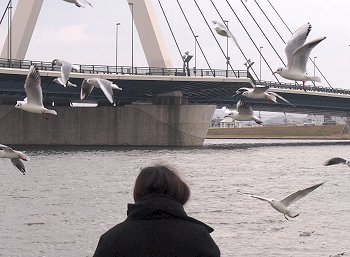 芦田川大橋下に向かいますと、2組のご家族がカモメsan達に餌やりで仲々賑やかな光景でした。暫しその様子を眺めながら何枚かパチリ。