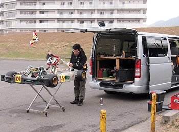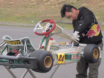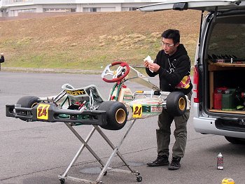 最高速度が200km/h以上のカートも有りますとは凄いなぁ〜と感じてしまいますけど、この男性のカートはどの位のスピードが出ますのでしょうネ…まぁそのような事はさて置きまして、丁寧に黙々と手入れをしておられましたから、ご本人に取られましては最高の相棒的存在であるのかも分かりません。