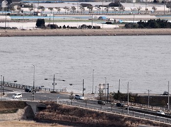 カモメsan達が群れ飛ぶ様子を暫し楽しみました後で、何気なく芦田川大橋下方向に眼を向けますと、駐車場では楽しそうにゴーカートの手入れをしておられます男性が眼に入ってしまいました(^.-)☆