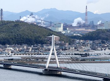 ご先祖様に手を合わせました後で、暫し眼下の景観を楽しむ事となりました。JFE超えの東方の山には、この日もまた天文台がよく見えました(^-^)