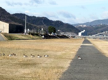 運動公園は、この日が仕事始めでしたのでしょうねぇ〜陸上競技場外周を廻るコースでの散策を終え、帰路はまた河川敷を経由で我が家にと向かいます。