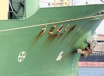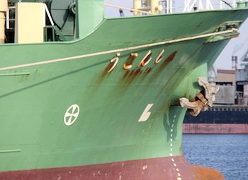 家紋で言えば「くつわ」ですから、ひょっとしたら鹿児島県に籍を置きます貨物船なのかも分かりませんねぇ〜実際はどぅなのか知る由もありませんけど…風も無い晴天ですから、海上は実に穏やか。