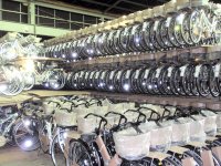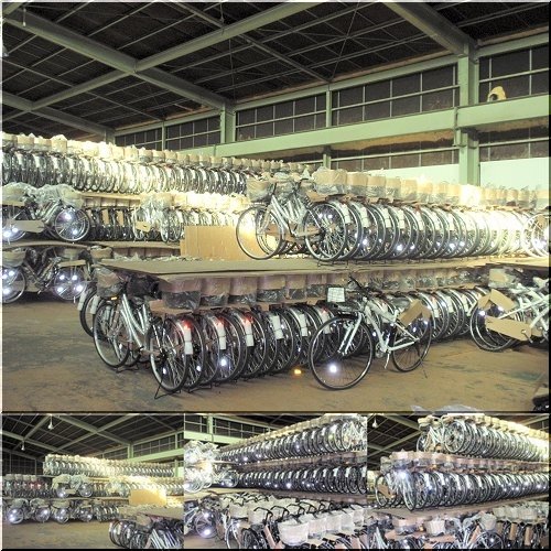 で、倉庫の中を覗かせて頂きましたら、うん、うん、倉庫内は莫大な数の自転車で満杯状態(^-^)「写真撮ってイィですか?」と尋ねますと、「あぁ、えぇよ」との事でしたから、早速、数枚パチリとなりました。