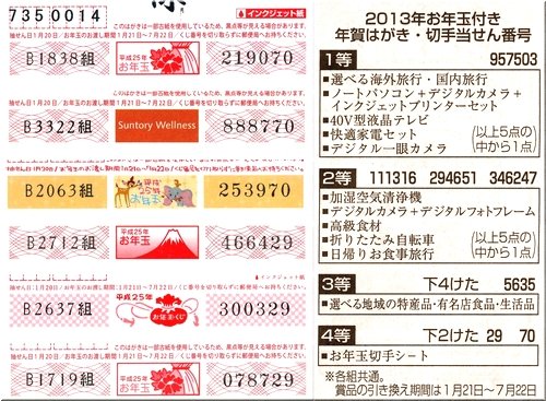 年賀はがきの当選番号をチェックしましたら、う〜ん、6枚でしたか…
