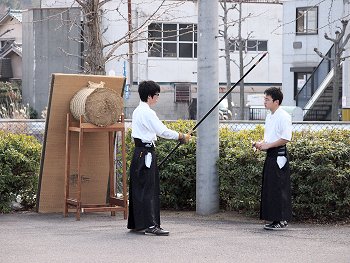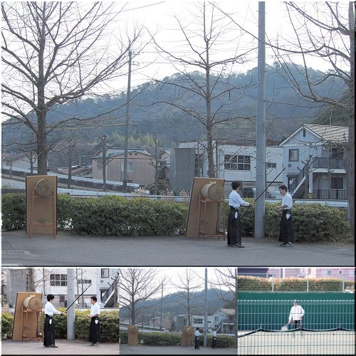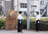 とにかく、逆らうワン公です(^-^)いつもでしたら、ゴンchanの方が土手方向に向かおうとするのですけどねぇ〜弓道場までヤッて来ますと、先輩が後輩にご指導中。