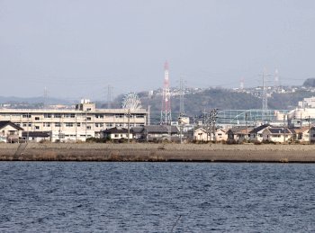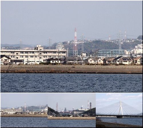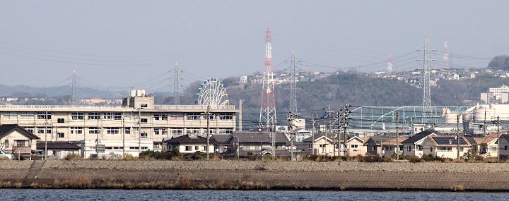 箕島小学校の後方に観覧車が顔を覗かせておりました(^-^)この観覧車は、確か『ビッグホイール』と言ったように思うのですけど、この観覧車が設置されました際に、この絵日記に綴りましたような…