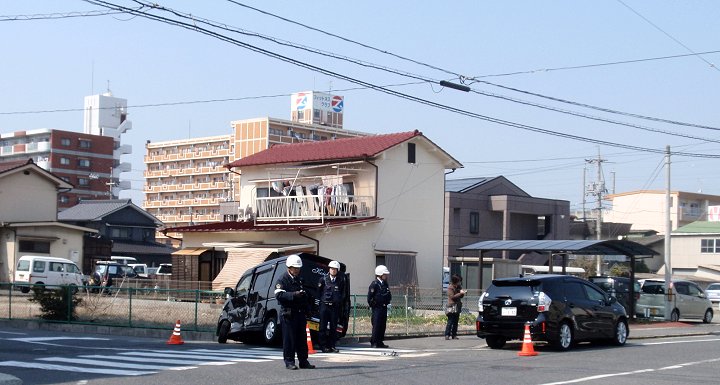 携帯に耳を当てますと、「おぉ〜い、キミの職場の近くでまた衝突事故が発生しているぞぉ〜」との事で場所を尋ねますと、うん、うん、ここはGONsanも熟知しています事故多発交差点(^-^;急いでチャリンコを漕ぎ駆け付けますと、今から現場検証なのか既に終わっていますのか…よく分かりませんけど、とりあえず10枚近くパチリとなりました。