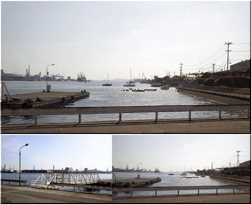 この福山港の岸壁近くは決して美しい瀬戸内の海ではありませんで、よくよく見ますと真っ黒というか茶色っぽい汚れた色。