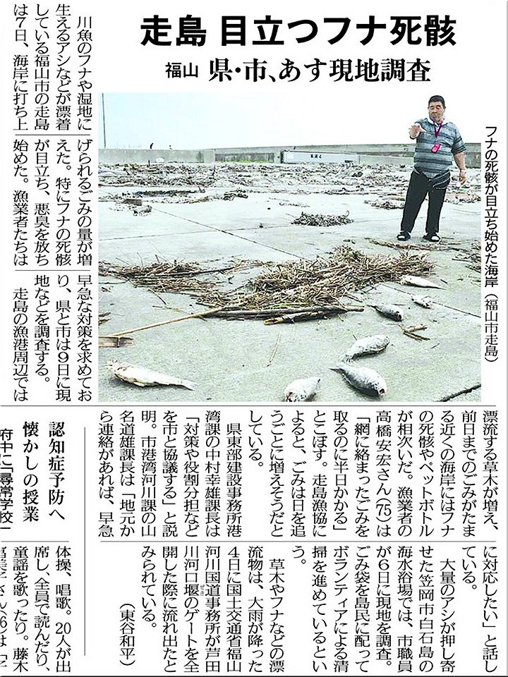 早朝、釣りに出掛けますために笠岡の干拓地内を車で走行しておられました方が、突然飛び出して来ましたワンchanを保護され、そのまま連れて釣りに出掛けられましたようです。