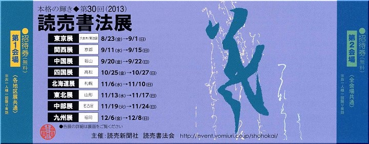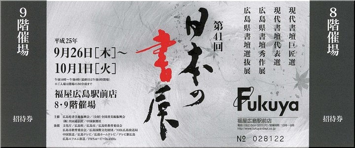 招待券の日程を見てみますと、読売書法展の方は9/20〜9/22の2日間に福山での開催で、日本の書展の方は9/26〜10/1間に広島での開催でありました。