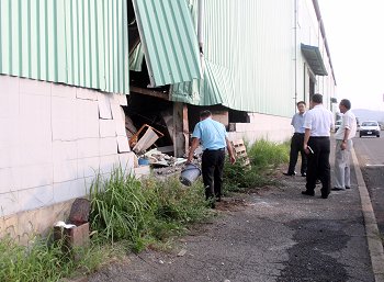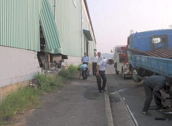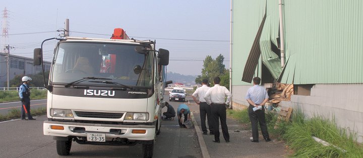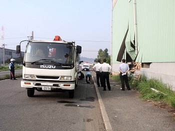 >衝突し、はずみで○○○○倉庫の壁にぶつかった様です。