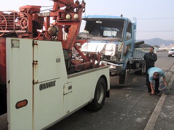 「いぃぇ、ただの野次馬です。が、明日、私の職場の『安全会議』開催ですから、その会議の教材になりましたら…と、撮らせて頂いておりますが…でも、具体的な社名・車輌ナンバー等は出しませんけど…」と丁重にお応え致しますと、何にも言われませんでしたけど…