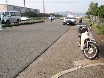 たまたま所要で一文字堤防の市道を走行しておりますと、突然、前方にお巡りさんのお姿が!!