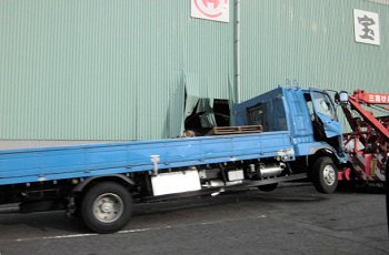 そぅでしたか…「中央分離帯」に衝突が倉庫壁面への接触の要因でありましたか…