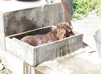 で、蛇口を捻りますと、嬉しそうに全身に水が当たりますように前後左右に向きを変えておりますから笑ってしまいます。