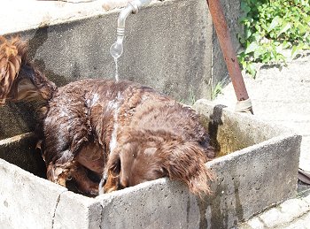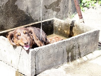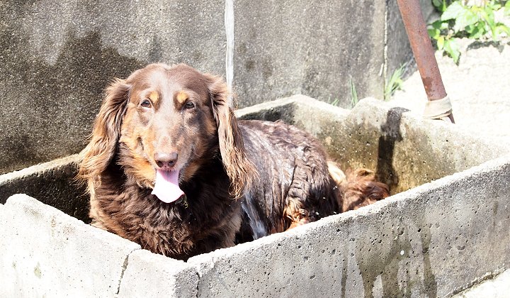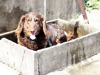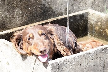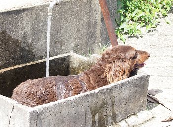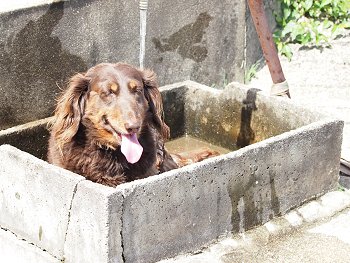いつものように、水くみ場が近付きますと急いで駆け足。一足先に水道の蛇口下で待機です。そして、「早く来い!!」とばかりに「ワンッ!!」と一泣き。