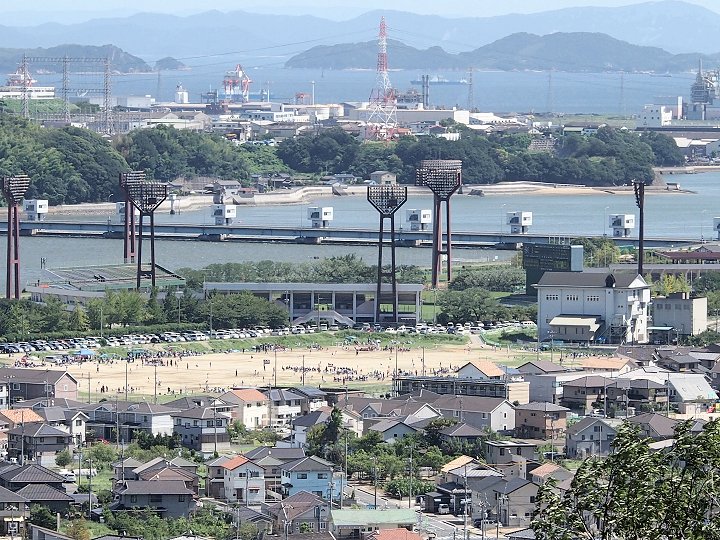 竹ヶ花運動公園では、テニスコート・プール沿いにズラッと車が並び多目的広場では何やら競技が開催中。