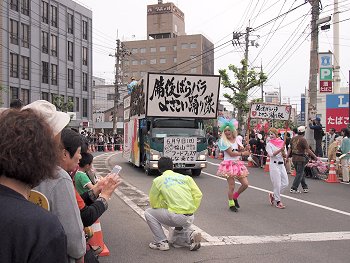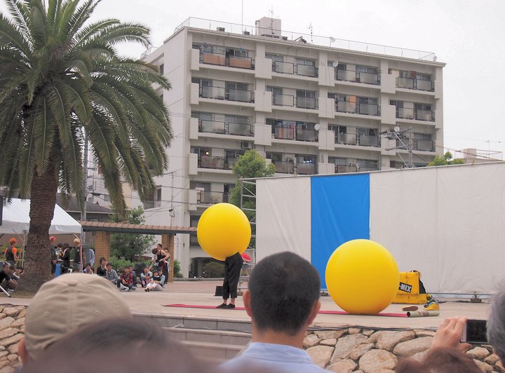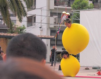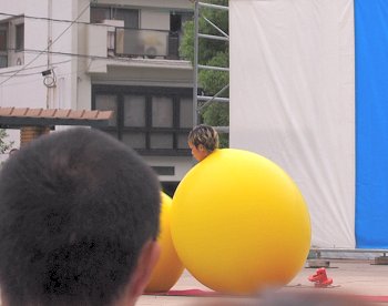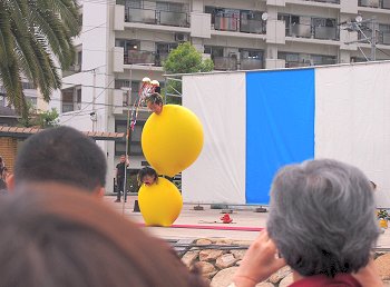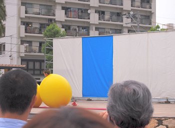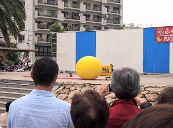 後から分かりましたが、この大きく膨らませた風船の中に人が入るのですから、決して破裂する事はなかったのでしょうが…福山初登場の3人組のこのPLE−MIX。