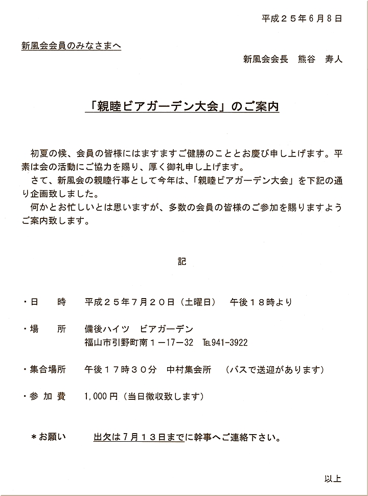 | 2013年 新風会「親睦ビアガーデン大会」 <1/2> |