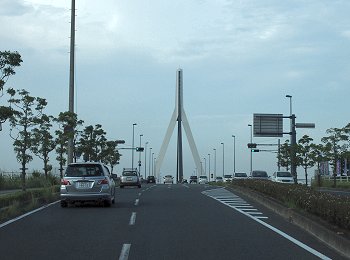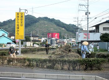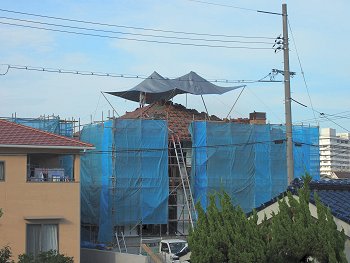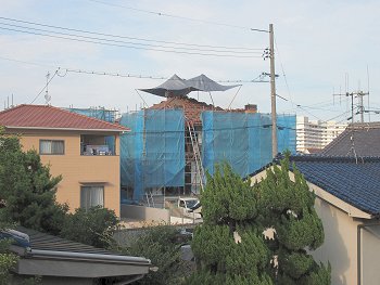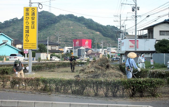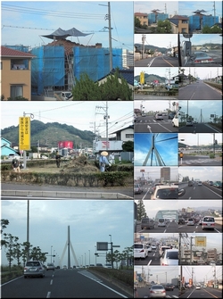 (左上)暑い中での屋根の瓦葺き工事。屋根の上に上手にシートを広げておられまして日傘替わり(^_^)こぅでもしなければ熱中症に(^.-)☆ (左中)これは歩道と言うか分離帯の中の草刈り作業。んっ?!福山市の委託業者の方?まさか町内の有志の方々でもないでしょうし… (左下)芦田川大橋西詰めから斜張橋の主塔を… どれも皆、GONsanにとりましてはイィ景観です。