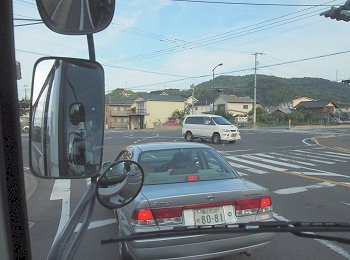 GONsanは空席の一番前に座りましたから、運転手さんのお隣りで写真を撮りながら(^.-)☆ 見慣れた我が町内の景観ではありますけど、仲々こんなアングルでは画像に納めます機会はありませんから、結構ラッキー\(^o^)/ あっちを向いてはパチリ。こっちを向いてはパチリ。