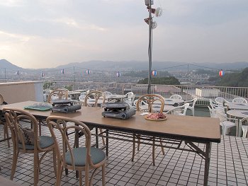 本州・尾道市から四国・今治市までは、大小10の美しい橋で結ばれています。その尾道までは車で30分(山陽自動車道経由)という便利の良さ。瀬戸内の多島美を眺めながらのドライブは最高の贅沢です。…と、こんな備後ハイツでありましたが、昨年の新聞切り抜き記事には、こんなニュースもありました。これは、何新聞でしたか…◆備後ハイツ来年9月廃止 福山市--- 2012/10/13 ---・来年9月末で営業を終了し、廃止されることが決まった「備後ハイツ」福山市は、福山勤労総合福祉センター「備後ハイツ」(同市引野町南)の営業を来年9月末で終了し、廃止する。利用が伸び悩む中で施設が老朽化したため、これ以上の営業継続は困難と判断した。1972年5月の開業から41年余りで幕を閉じる。備後ハイツは、厚生労働省の外郭団体の雇用促進事業団(後に雇用・能力開発機構)が開業した。国の特殊法人改革の一環で同機構が手放すことになり、市が2003年に105万円で購入した。建物は鉄筋コンクリート地上3階地下2階延べ約6,500平方メートル。宿泊施設や研修室、レストランなどを備えており、修学旅行の団体も受け入れてきた。ピークの2000年度には約11万2,600人が利用したが、11年度は約9万7千人にとどまった。運営は開業時から、市などが出えんした財団法人福山勤労福祉事業団が担ってきた。しかし、同事業団は約4億4千万円の累積欠損金を抱え、国の公益法人改革に伴い一般法人へ移行するための法的条件をクリアできず昨年9月末に解散。市は貸付金のうち約4億4,575万円の債権を放棄した。現在は市内のホテル経営会社「ベッセル」(同市南本庄)に業務委託しているが、建物が老朽化。多額の維持改修費がかかるため、市は営業の継続を断念した。市労政課は「勤労福祉施設として所期の目的は達成した」と説明している。備後ハイツの佐藤恭弘支配人は「歴史を重ねてきた施設だけに閉館は寂しい。残り1年の営業となったが、さらなる利用促進に努めたい」と話している。…と、歴史のあります備後ハイツなんですけど、今後の課題は多いようですネ。新風会の皆さんが到着時には、まだ数組の利用客と、ご覧の通り少々寂しい状況でありました。