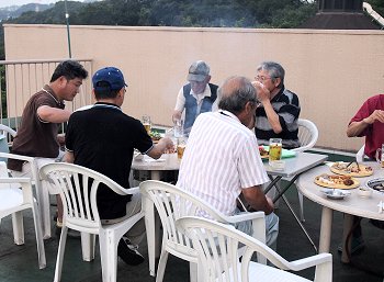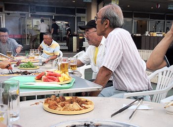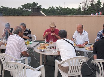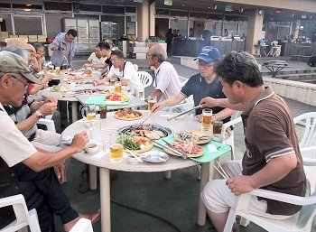 新風会「親睦ビアガーデン大会」 先週の土曜日・7/13は、我が町内の親睦会であります「新風会」の『親睦ビアガーデン大会』でありました(^.-)☆ 場所は備後ハイツ。 勤務を終え帰宅し暫くユックリ過ごしまして、定刻5分前に集会所に出かけますと、相変わらず皆さんお早い。GONsanはビリから三人目の集合でありました(^-^) 定刻に備後ハイツsanの送迎バスは出発です。
