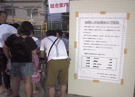 運が良ければ、デジカメ・扇風機・お米・薔薇の苗等が当たりますのでしょうけど、決してクジ運は良くありません我がファミリーですから(^-^)GONsanと息子家族は、所属します町内会が異なりますけど、息子の町内会は「まんご会」のメンバー主体に取り組んでおりまして、うん、うん、今回も取扱い商品はアルコールですか(^-^)