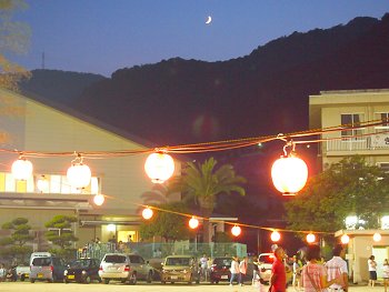 盆踊りのチラシを見ますと、「いにしえより水呑で歌い踊られ、水呑より備後の村々に発進された『音頭と踊り』が今年で復活10年目を迎えます…」との記載がありますから、そうですネ…2003年に盆踊り大会が復活しましたのですねぇ〜早や10年経ましたか…まぁそのような事は良いのですけど、P.M.7:30過ぎでしたか…嫁さん・息子の嫁さん・孫娘の4人で出掛けてみましたら、カラオケ大会の真っ最中でありました。