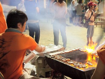 「あっ、パパ」の孫の声に眼を向けますと、焼き鳥を焼いておりました(^.-)☆