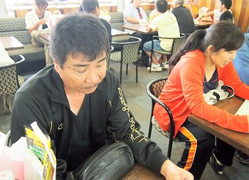 (右)日頃、読書なんかしないのに、こんな場で何を眼にしていますのでしょうネ(^.-)☆